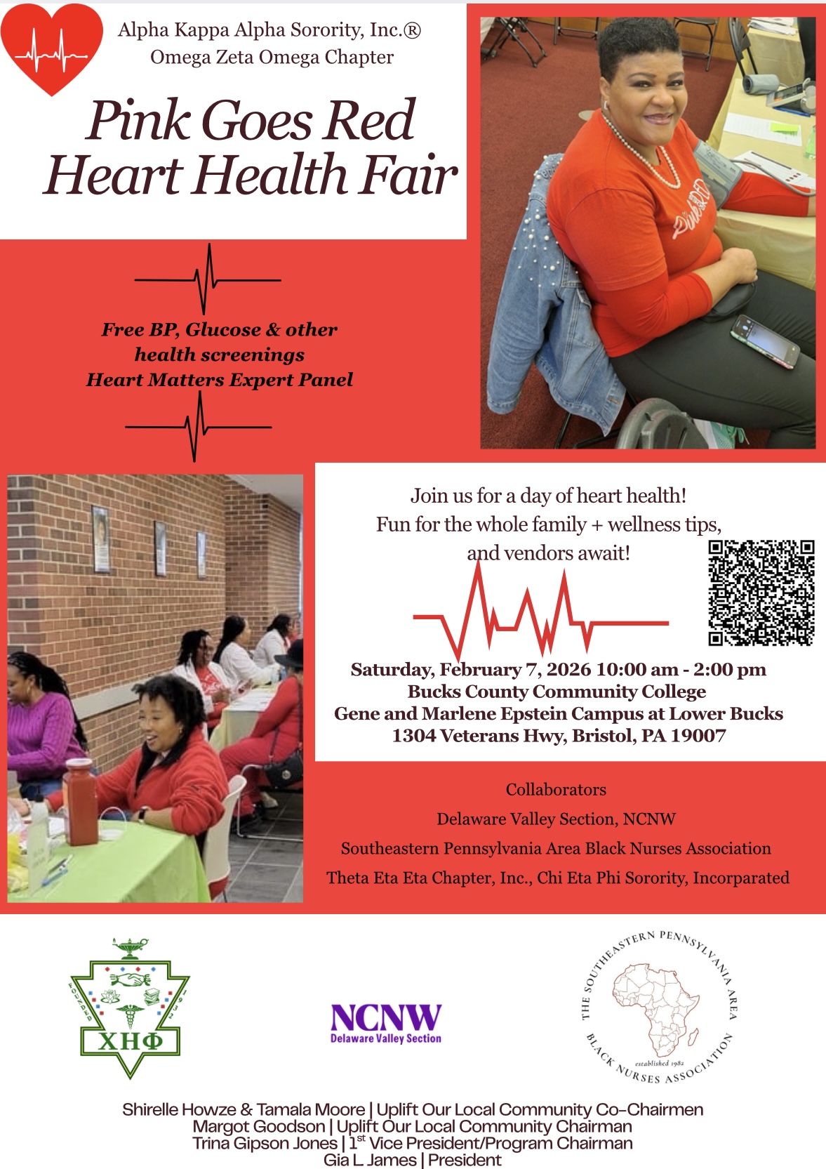 In support of the American Heart Association’s annual “Go Red for Women”, Alpha Kappa Alpha, Omega Zeta Omega chapter invites you to join us for our annual Pink Goes Red Health Resource Fair on Saturday 2/7/26 in Bristol, Pa. (See attached flyer for more details).